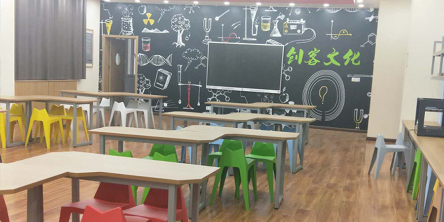 阿斑兔將機器人、創客、3D打印、航模等融為一體,研發、設計具有情景體驗、創意生成、原型制作、展示交流等多功能為一體的機器人教育教學場所,即創新教育實驗室,針對不同年齡段學生的特點、學校學情等,為其提供足夠的空間、設備和完善的課程體系。